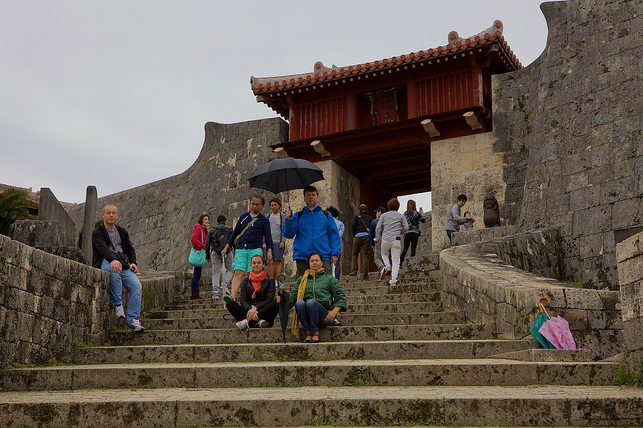 Решив вопрос с машиной, мы отправились в город Наха - административный центр префектуры Окинава. На его территории расположен замок Сюри, построенный предположительно в 13 веке. Замок, как и вся Окинава, был почти полностью разрушен американцами во время второй мировой и отстроен заново только к 1992 году. Всего сто лет тому назад в королевстве Окинава было около 300 замков, больших и маленьких. Все они сгорели в пламени "последней" - как тут называют вторую мировую - войны. Здесь шли самые кровопролитные бои с американцами. Именно здесь японцы начали применять смертников-камикадзе. И именно здесь погиб каждый четвертый житель острова. Зато сейчас канал американского военного телевидения на Окинаве транслирует забавную рекламу. Показывают красивое побережье, и голос за кадром говорит: "Внимание! Прыгать в воду со скал запрещено!!! Под водой вас ждут острые кораллы. Кораллы - главная причина гибели американских военнослужащих на Окинаве".