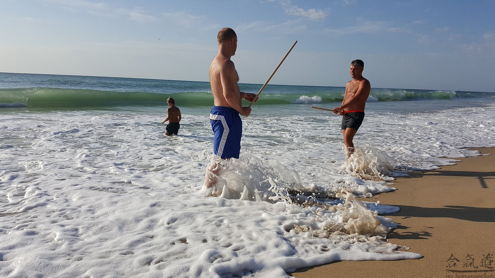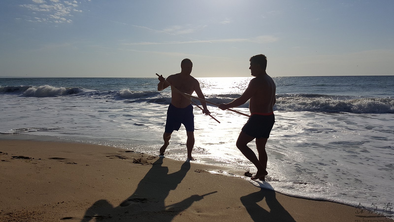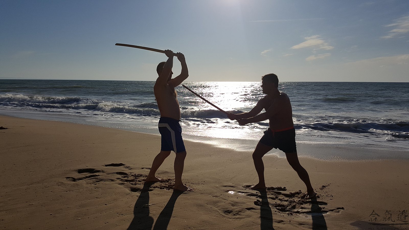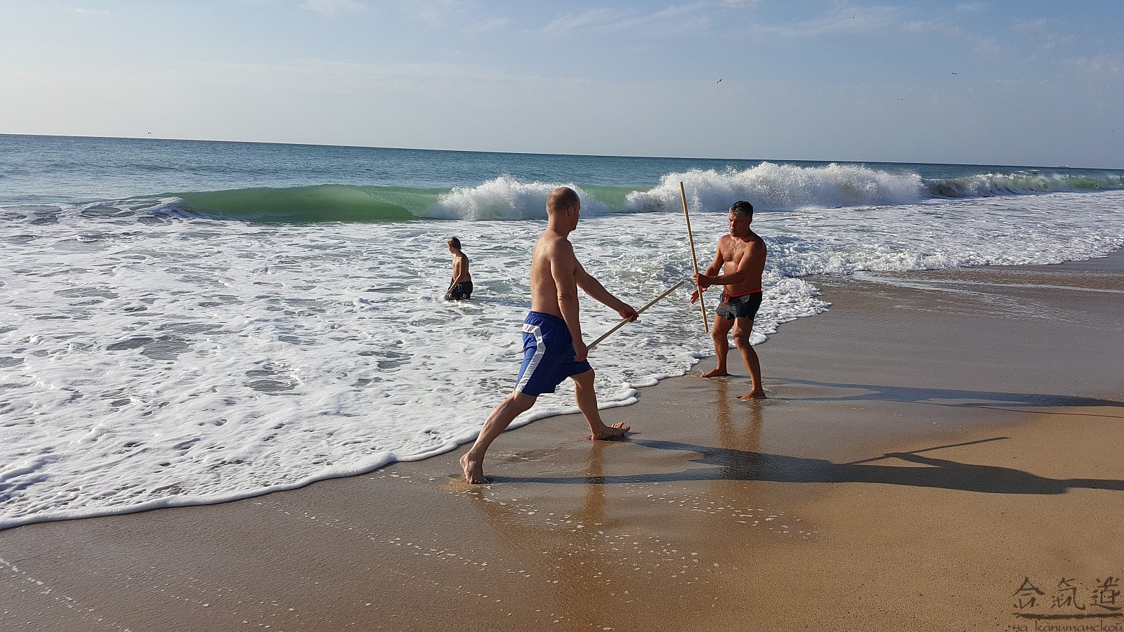 Практика кен-ва-джо на черноморском побережье. Ранним утром, пока солнце только-только начинает нагревать воздух, песчаные пляжи Варны - это, как говорят в Болгарии, истински райски кът для тренировок. А после практики можно охладиться, окунувшись в морские волны.