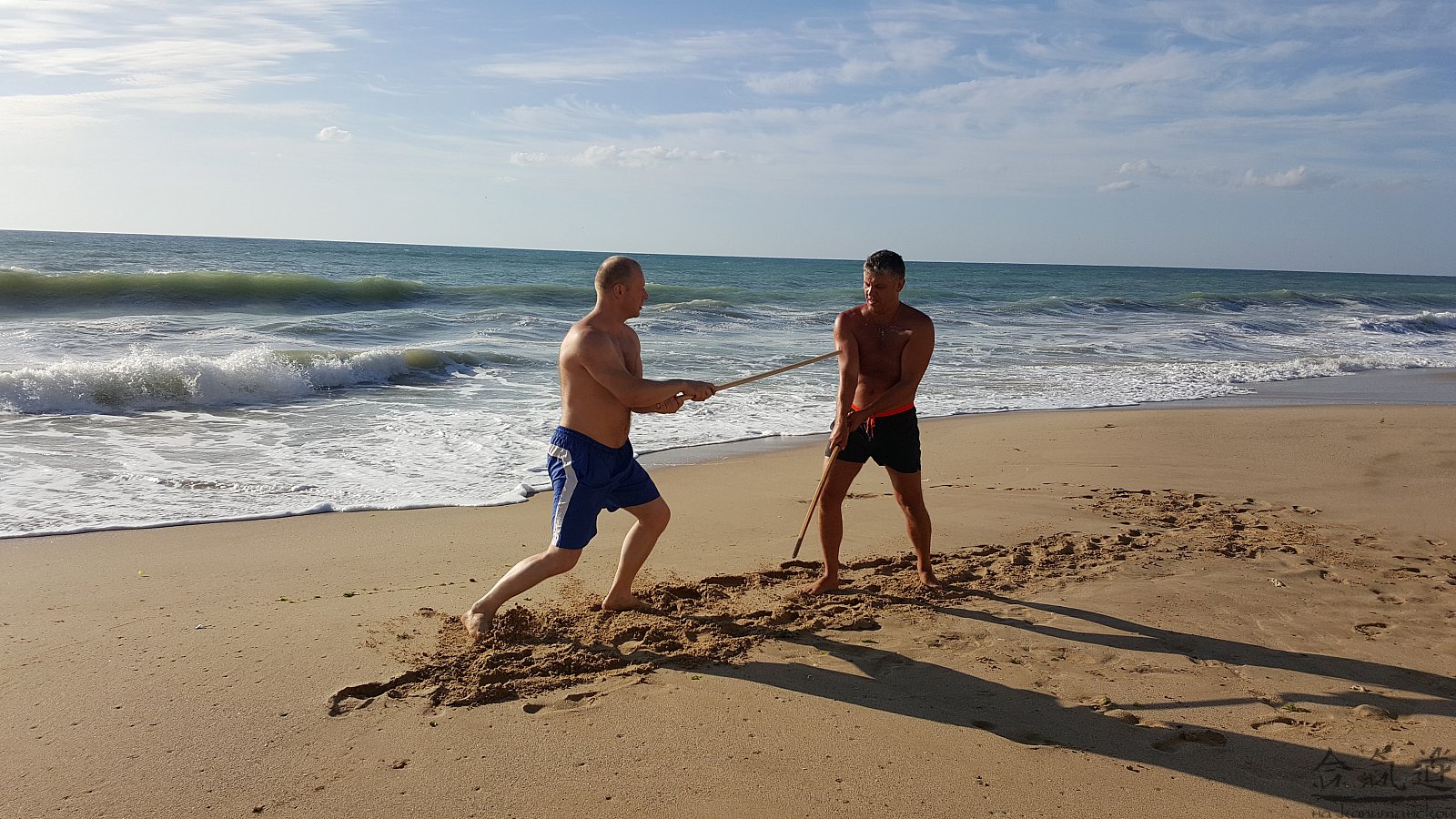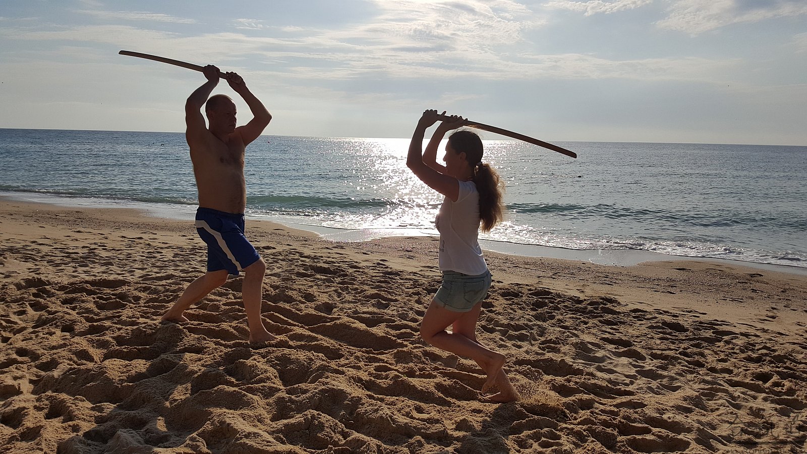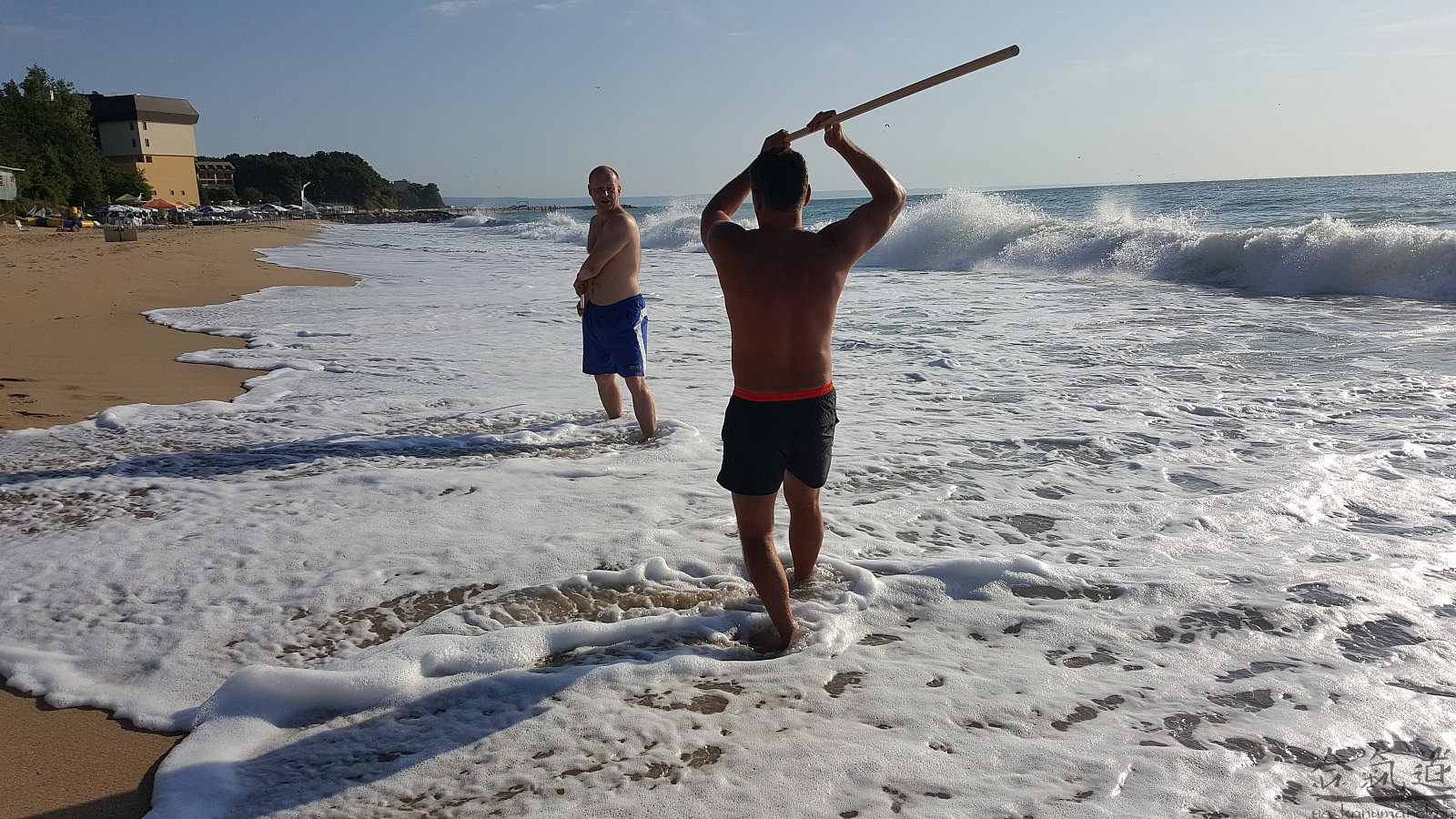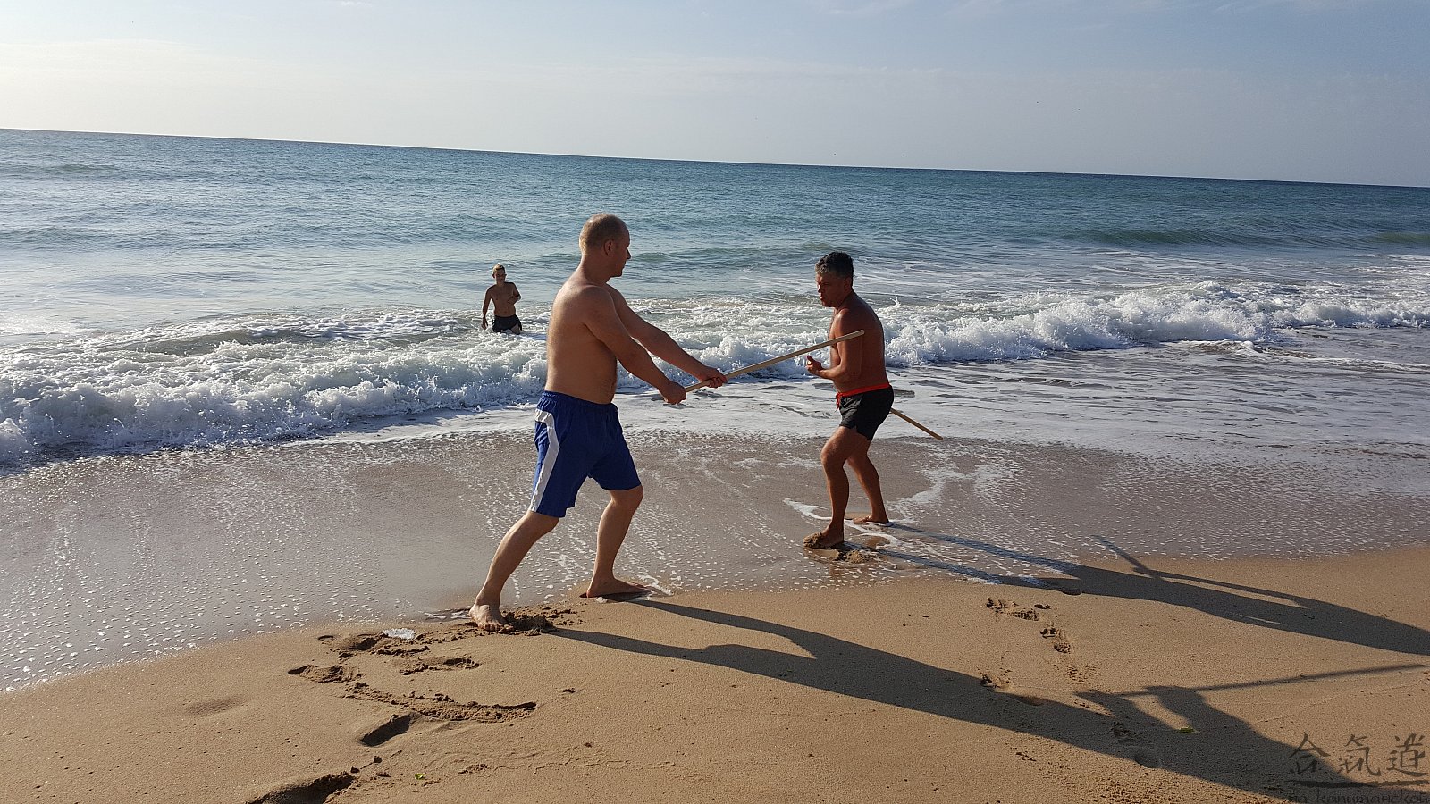 Практика кен-ва-джо на черноморском побережье. Ранним утром, пока солнце только-только начинает нагревать воздух, песчаные пляжи Варны - это, как говорят в Болгарии, истински райски кът для тренировок. А после практики можно охладиться, окунувшись в морские волны.