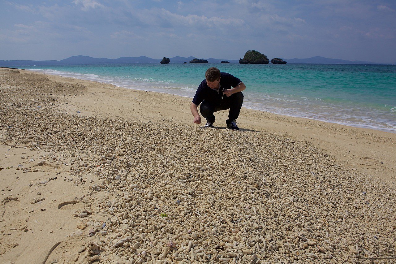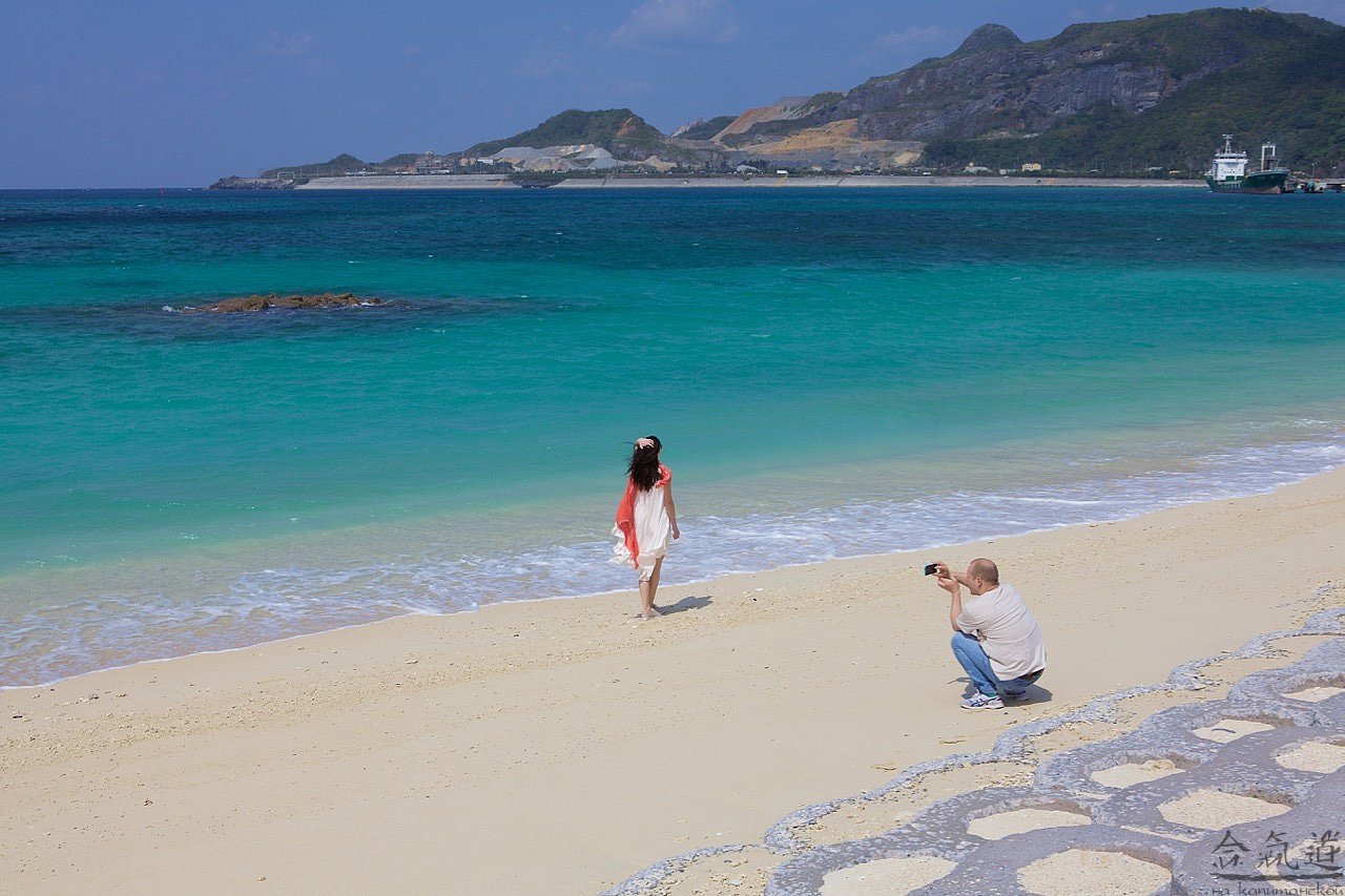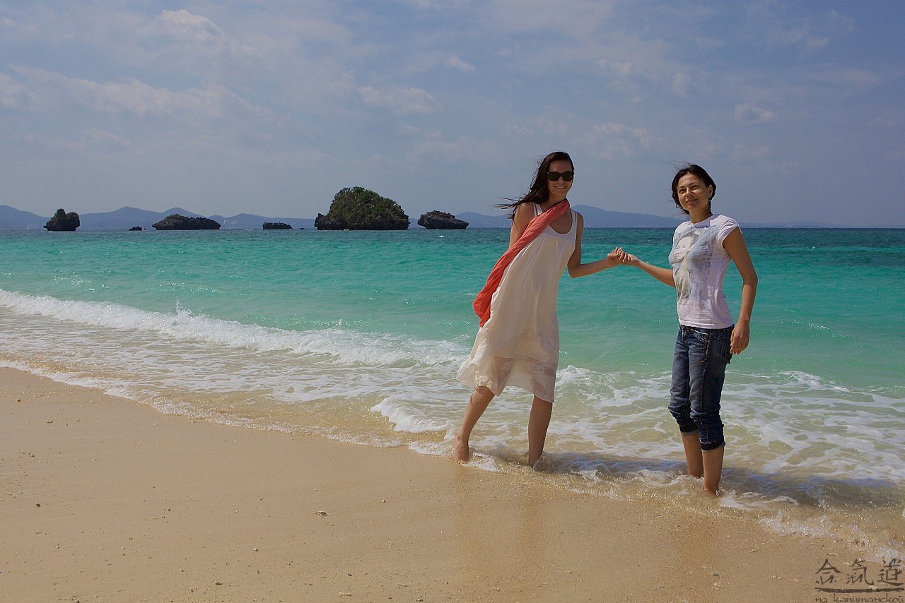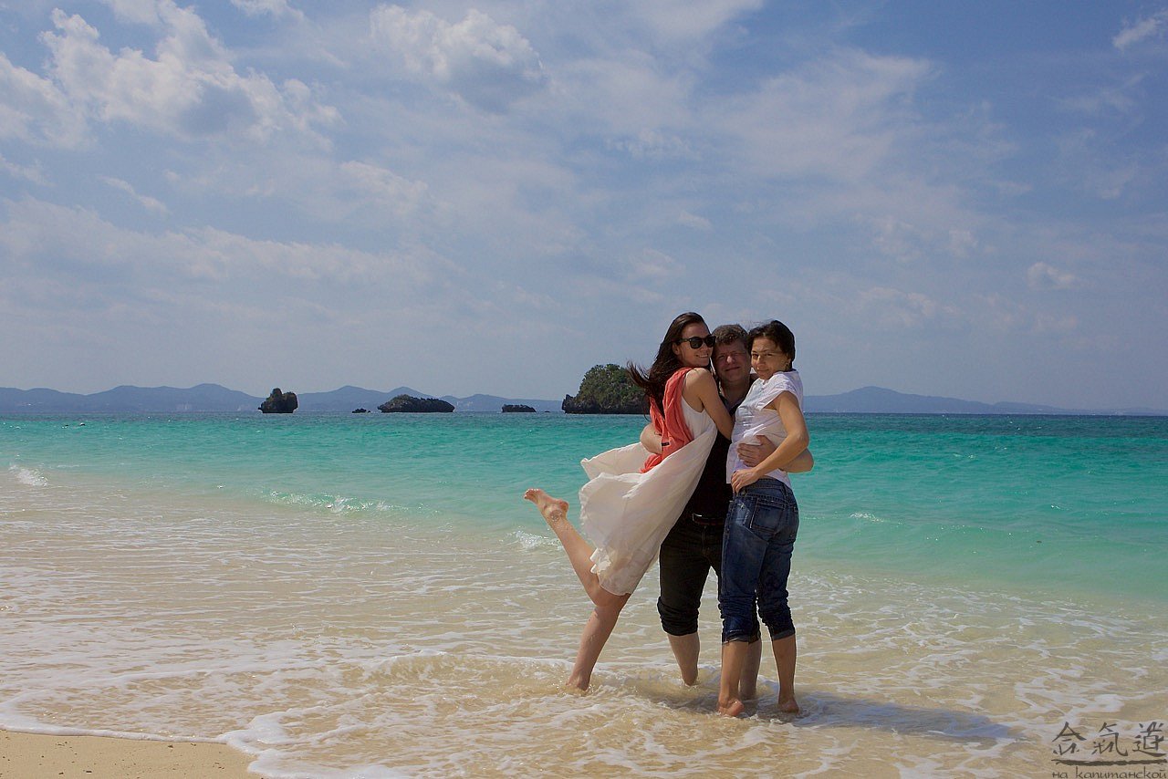 Чтобы попасть в Чюрауме, нам нужно было проехать примерно половину острова с юга на север. Это примерно 100 км - по здешним меркам, путь не близкий. Поэтому, сев в наше авто, я тут же самозабвенно отдался во власть родственников смерти, а когда, спустя несколько времени, открыл глаза, был ослеплен: яркое солнце отражалось от белоснежного песка, на который набегали бирюзовые с молочной пеной волны. Слова восторга сами вылетели из моей груди: "Твою же мать!" И уже обращаясь к водителю: "Сумимасен, чотто мате кудасай". Водитель наш был умен и предупредителен. Он все понимал с первого слова. Поэтому начал тормозить уже тогда, когда я еще обращался к природе.