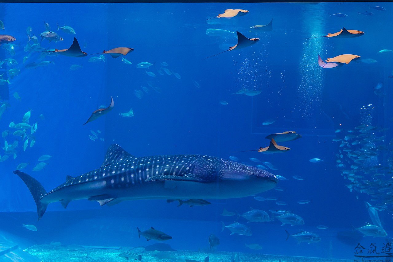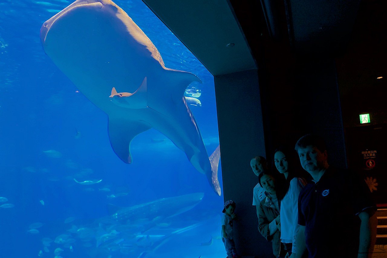 Мы решили податься в Чюрауме - окинавский океанариум. Искупавшись и устроив целое шоу с переодеванием для, вобщем-то, строгих нравов японской публики, мы отправились туда, где нас заждались уже китовые акулы и морские дьяволы, тысяча чертей!