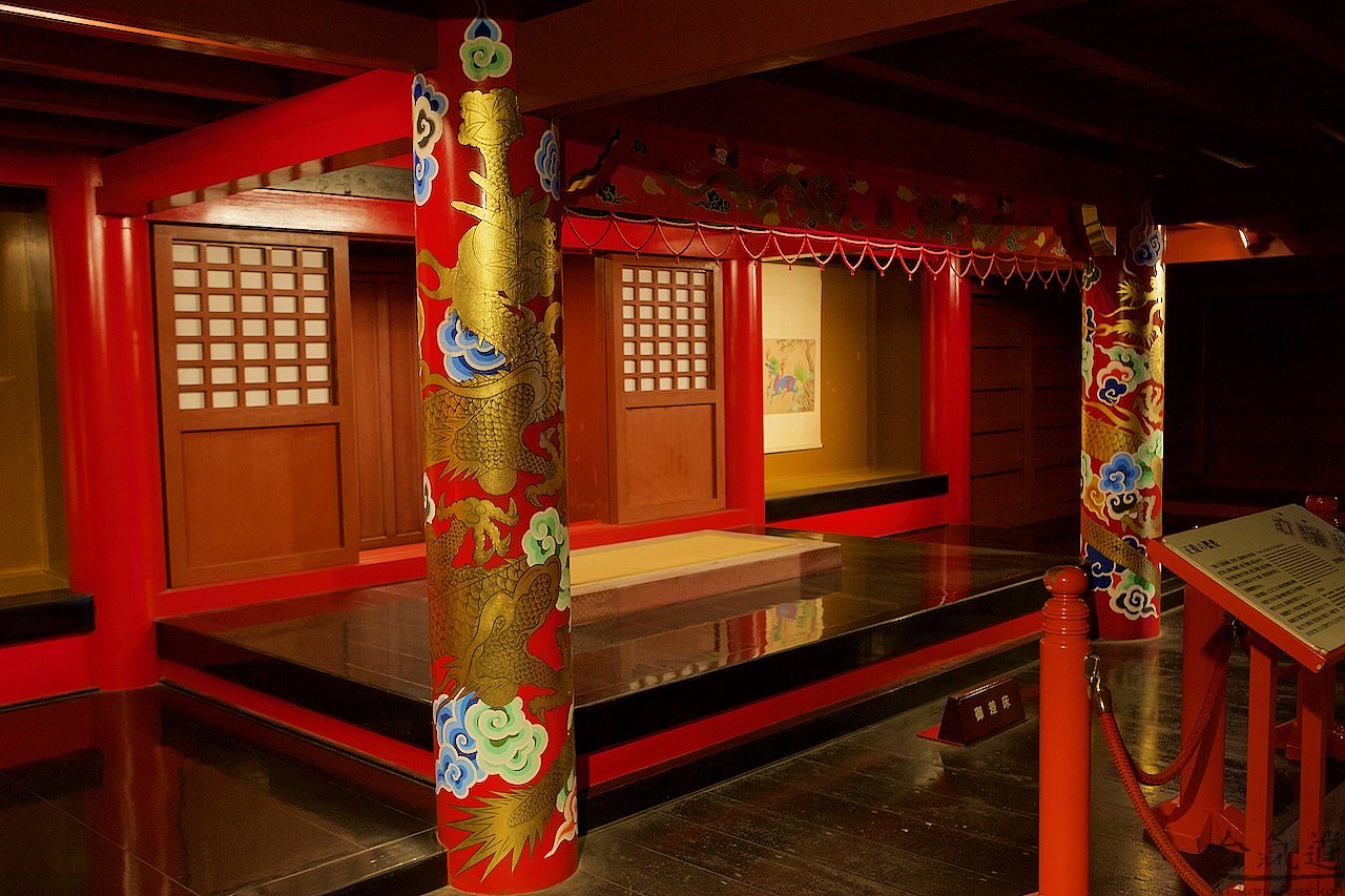 Экспозиция Сюри дзе небогата. В основном это комнаты: комнаты большие, комнаты поменьше и комнаты совсем маленькие. Еще есть узкие коридоры и тронный зал. Однако назвать Сюри дзе пустым не поворачивается язык. Весь замок заполнен по крышу ароматом самшита. Или кедра. Тут мнения наших экспертов разошлись:). Самшитом-кедром обшиты полы, стены и потолки замка. Полировка потрясающая. Никогда еще не видел я такой гладкой и приятной на ощупь древесины. Подгонка деталей тоже на высоте. Но все же для меня на первом месте оказалось не мастерство японских строителей-реставраторов, а ароматы тропического дождя и самшита, смешавшиеся и навсегда ставшие визитной карточкой Сюри дзе.