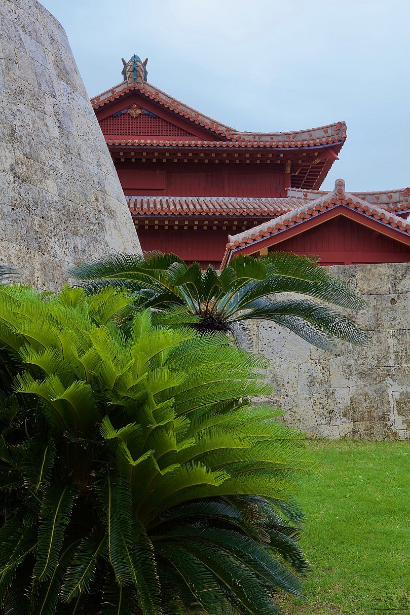 Решив вопрос с машиной, мы отправились в город Наха - административный центр префектуры Окинава. На его территории расположен замок Сюри, построенный предположительно в 13 веке. Замок, как и вся Окинава, был почти полностью разрушен американцами во время второй мировой и отстроен заново только к 1992 году. Всего сто лет тому назад в королевстве Окинава было около 300 замков, больших и маленьких. Все они сгорели в пламени "последней" - как тут называют вторую мировую - войны. Здесь шли самые кровопролитные бои с американцами. Именно здесь японцы начали применять смертников-камикадзе. И именно здесь погиб каждый четвертый житель острова. Зато сейчас канал американского военного телевидения на Окинаве транслирует забавную рекламу. Показывают красивое побережье, и голос за кадром говорит: "Внимание! Прыгать в воду со скал запрещено!!! Под водой вас ждут острые кораллы. Кораллы - главная причина гибели американских военнослужащих на Окинаве".