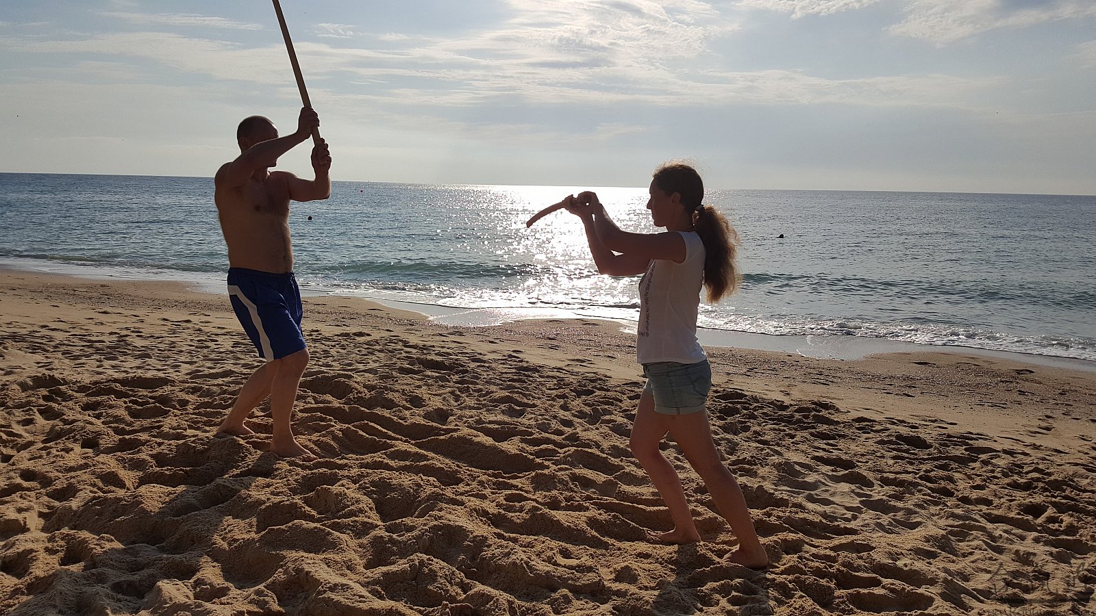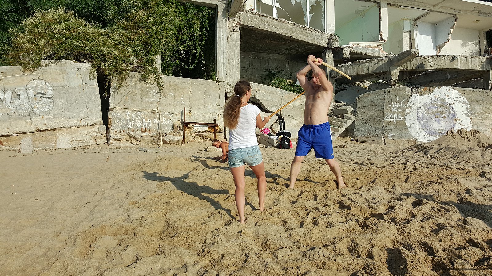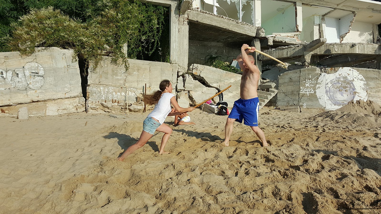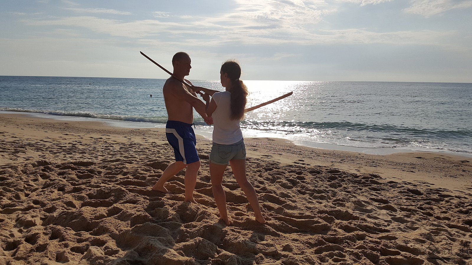 Практика кен-ва-джо на черноморском побережье. Ранним утром, пока солнце только-только начинает нагревать воздух, песчаные пляжи Варны - это, как говорят в Болгарии, истински райски кът для тренировок. А после практики можно охладиться, окунувшись в морские волны.